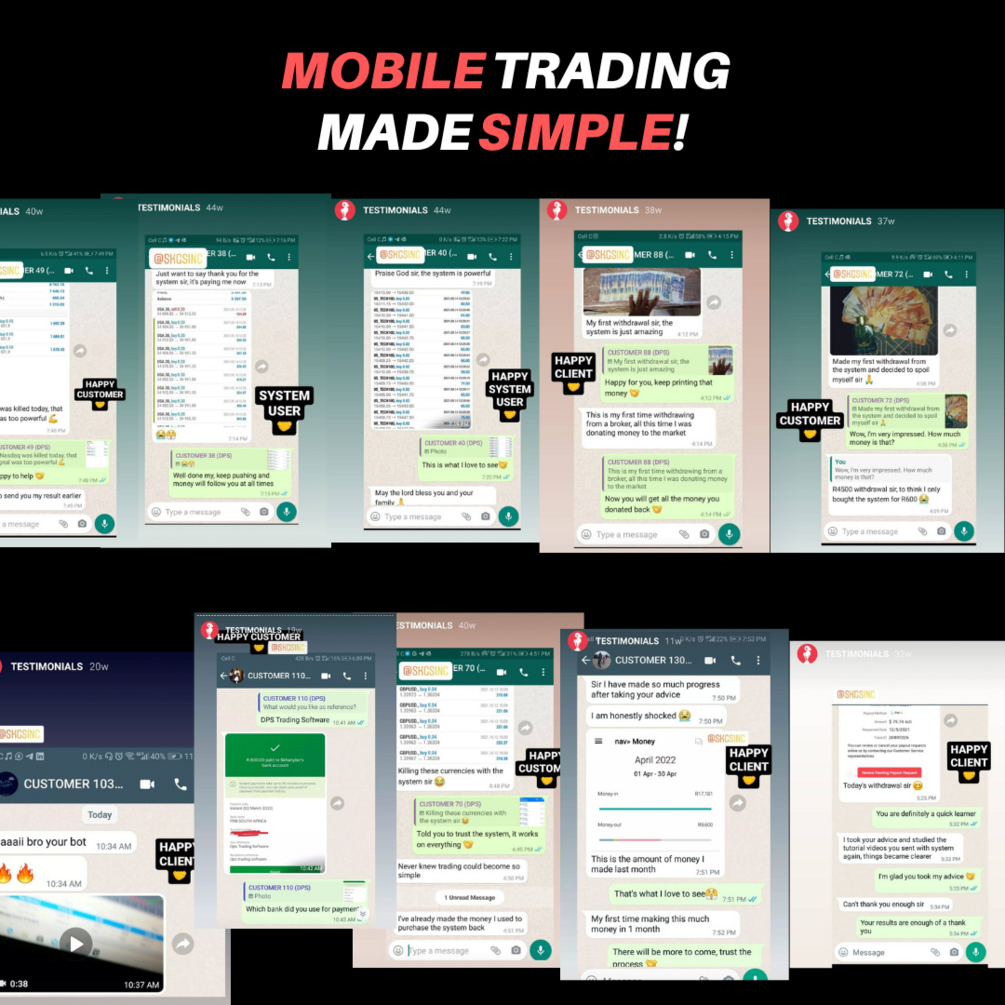 The DPS Cellphone Trading Software is an easy to use trading software that allows you to execute Profitable Trades in the market using ONLY your Cellphone 🤳. Once installed onto your Cellphone,it gives you Automatic :